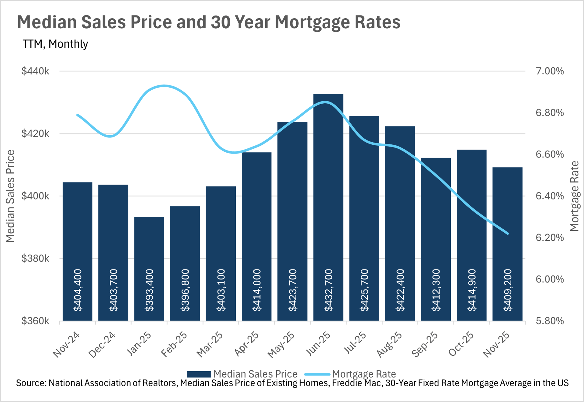 While you might expect inventories to decrease as interest rates decrease, that wasn’t the case in November. In fact, we saw inventories increase by 7.52% on a year-over-year basis, despite falling rates. This is largely attributable to the fact that existing home sales decreased by roughly half a percent while new home listings increased by roughly 1.7% on a year-over-year basis. We’ll likely see inventories continue to increase as we move through the winter months, until the usual spring rush begins and inventories start to move once again. Overally, we had a very different year in terms of market dynamics in 2025, so it’ll be interesting to watch where the market goes in 2026.